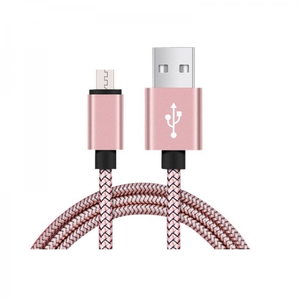 • Καλώδιο microUSB nylon braided fast charging data sync 3m ροζ OEM