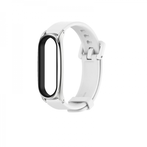 • Λουράκι σιλικόνης μεταλλικό πλαίσιο Xiaomi mi band 3/4/5/6 white OEM