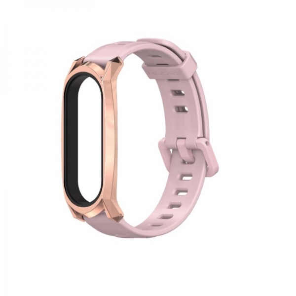 • Λουράκι σιλικόνης μεταλλικό πλαίσιο Xiaomi mi band 3/4/5/6 light pink rose gold OEM