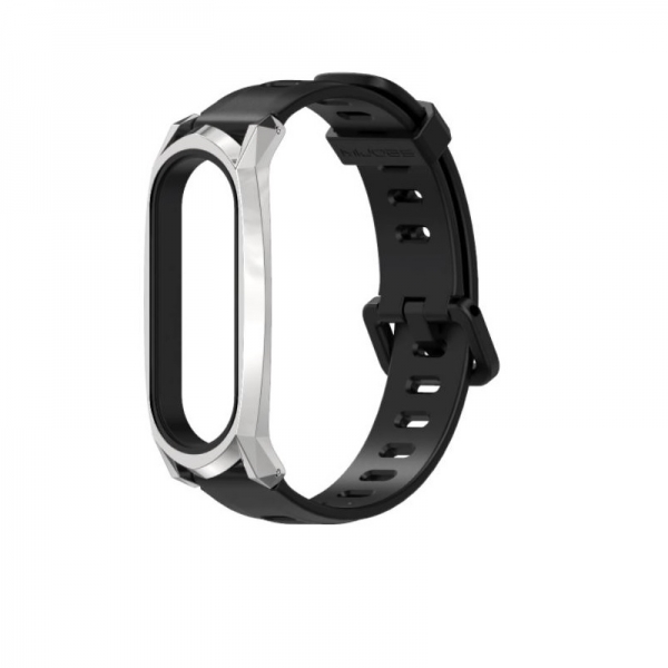 • Λουράκι σιλικόνης μεταλλικό πλαίσιο Xiaomi mi band 3/4/5/6 black silver OEM