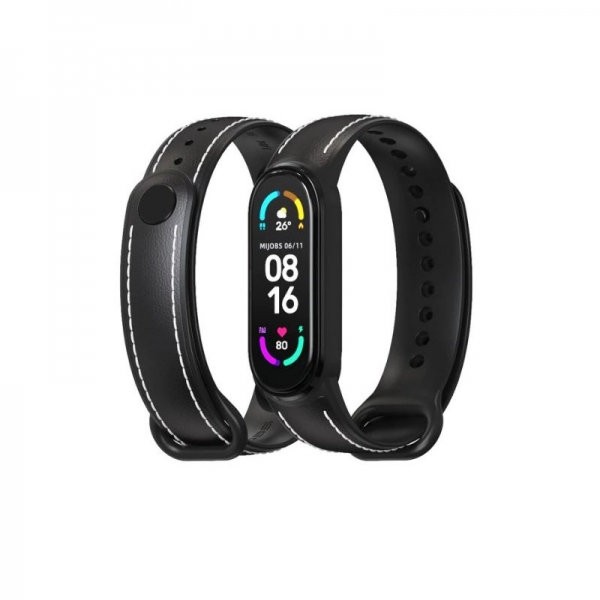• Λουράκι σιλικόνης leather hybrid xiaomi mi band 5/6/7 μαύρο OEM