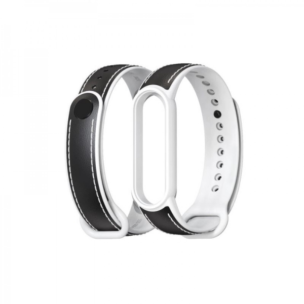 • Λουράκι σιλικόνης leather hybrid xiaomi mi band 5/6/7 μαύρο άσπρο OEM