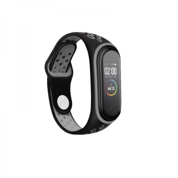 • Λουράκι για Xiaomi mi band 5/6 μαύρο γκρι με ανάποδο κούμπωμα ασφαλείας OEM